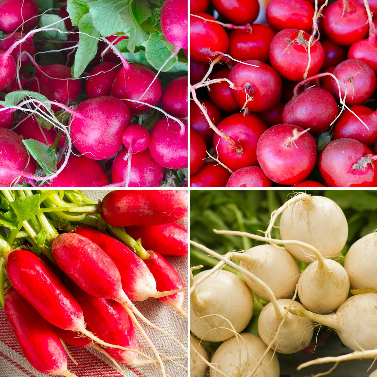A radish extravaganza! Relish four of our favorite varieties in one convenient blend: Pink Beauty, Cherry Belle, French Breakfast and White Globe. These heirlooms are crisp and satisfying cool-weather crops that mature quickly and add dimension to the menu of any home cook.