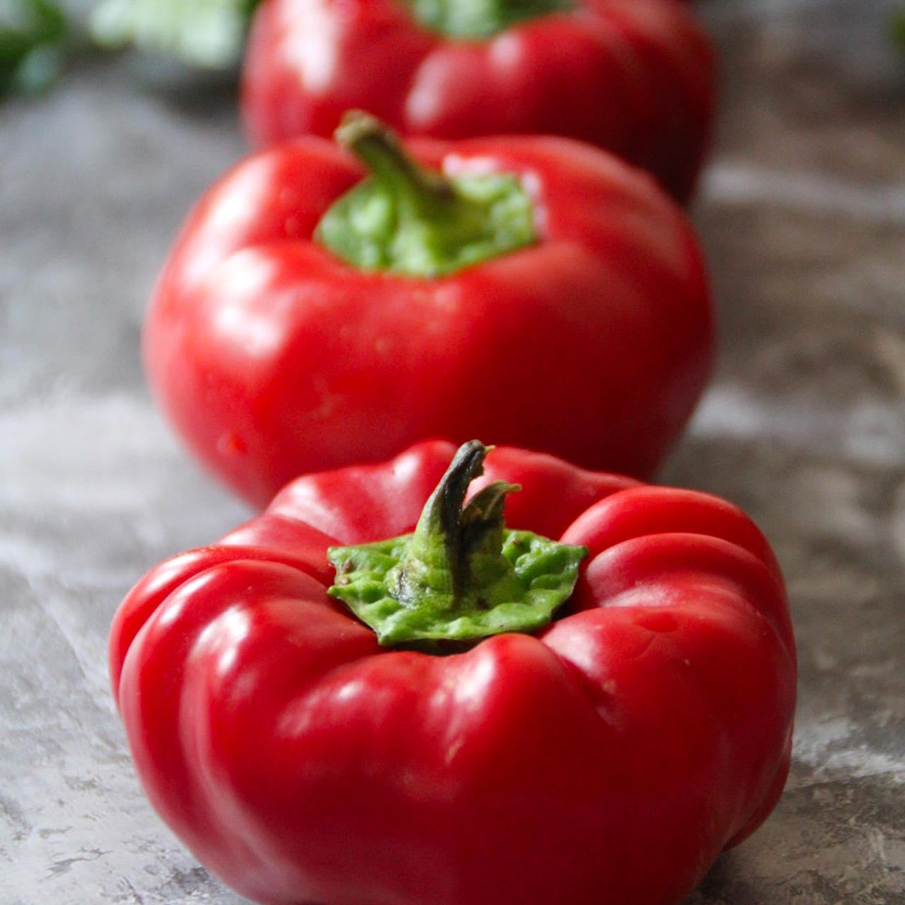 Hailing from the Smoky Mountains of North Carolina, this pimento is a real treat! Scrumptiously sweet, bright scarlet peppers measuring 4” wide hang from compact 24” plants. Produces early and tolerates cold somewhat better than most.