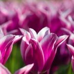 Ballade is multi-hued, lily-flowering heirloom (1953). A favorite for spring bouquets, this purple and white stunner blooms in mid-spring and is frost tolerant. Top size bulbs: at least 12 cm.Height: 16" to 24" depending on the variety. Early October delivery.