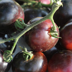 This early maturing dark chocolate cherry produces heavy yields of ½ to 1 oz black cherry tomatoes. Tangy and sweet with a firm texture, Black Opal is delicious fresh from the garden or as a paste.