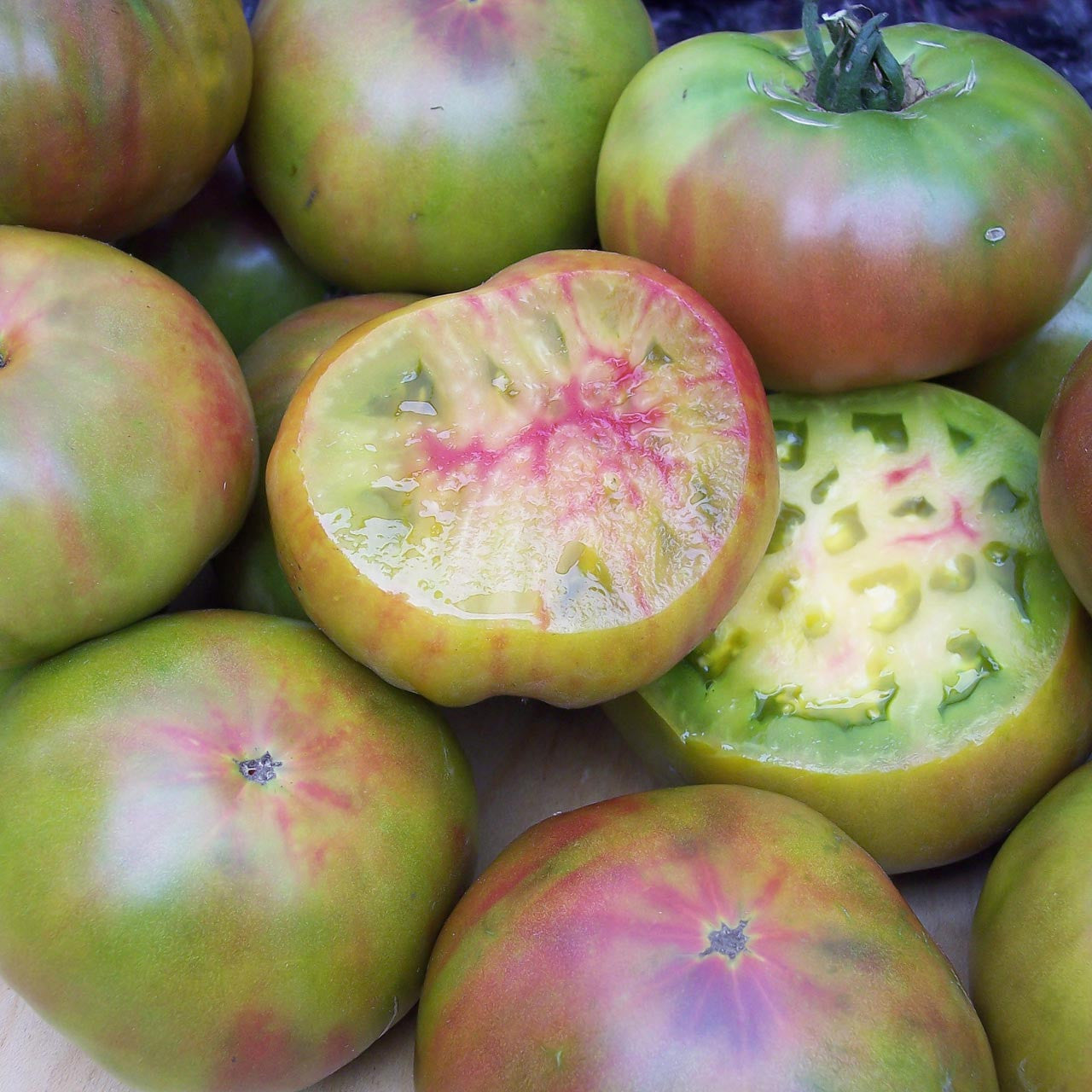 Also know as Ananas Noire, Black Pineapple is a bi-color Belgian heirloom celebrated for its tangy-sweet fruits with red- and purple-streaked green flesh. Beautiful, beefsteak tomatoes weigh up to ½ pound each.