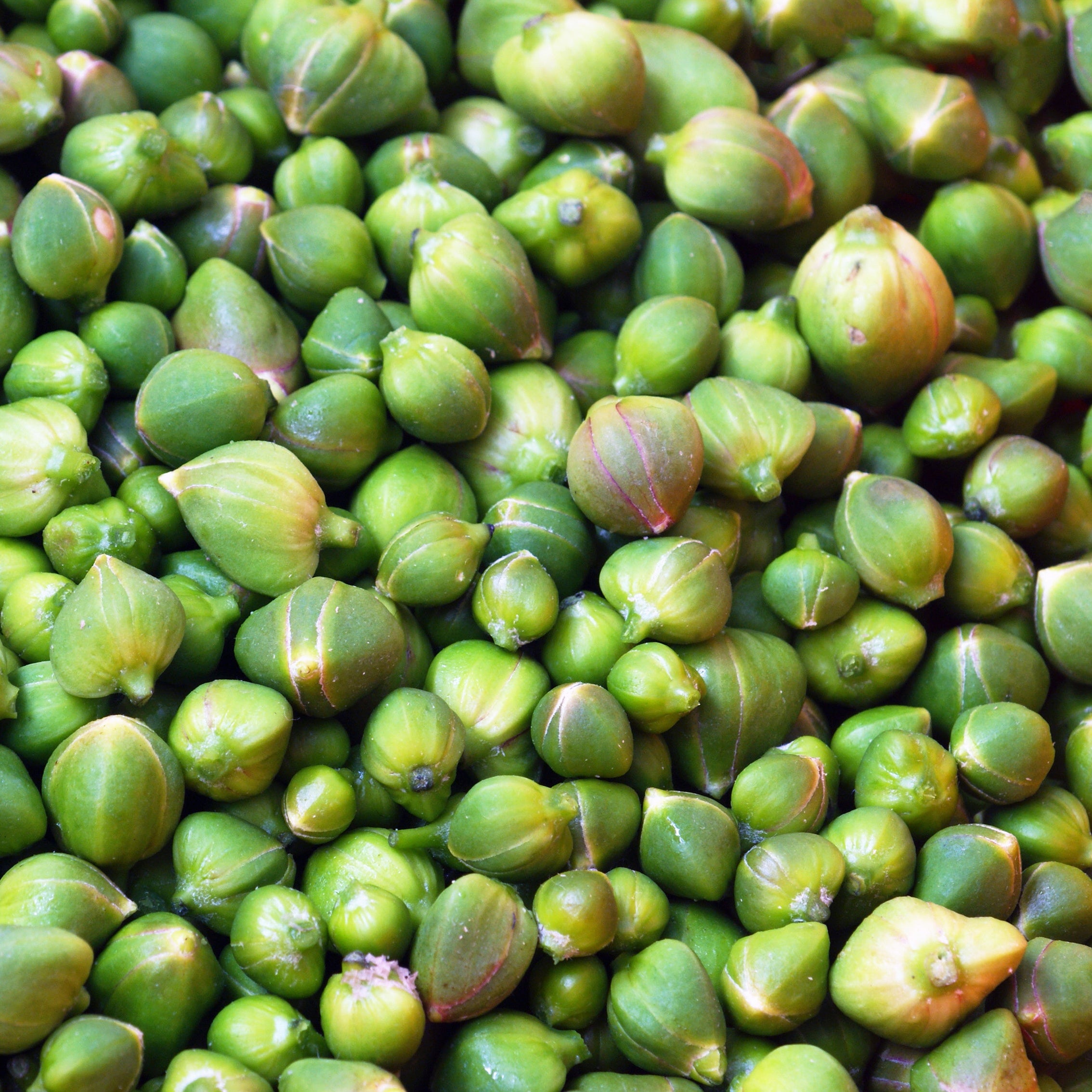 - Capers: Harvest unopened flower buds early in the morning when they’re tight and dark green. Smaller buds are more flavorful.