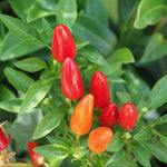 A vibrant, medium-heat pepper with thick walls and waxy skin, this heirloom transitions beautifully from yellow to orange to red as it ripens. With a Scoville rating of 1,500 to 4,000, it offers a balanced kick. Its compact growth makes Cascabella ideal for containers, adding both color and flavor to your garden or kitchen. Plant height 36”-46”.