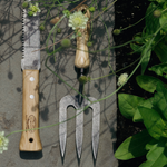This popular forged fork is well balanced with comfortable proportions, great for cultivating in smaller areas. Constructed of tempered boron steel to hold a very sharp edge with ash hardwood handle. Ideal for aerating clay soil.