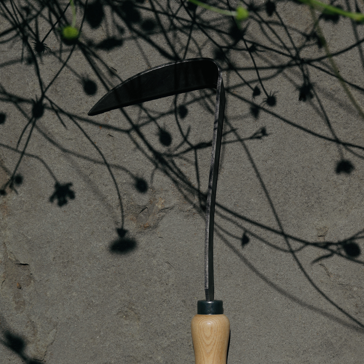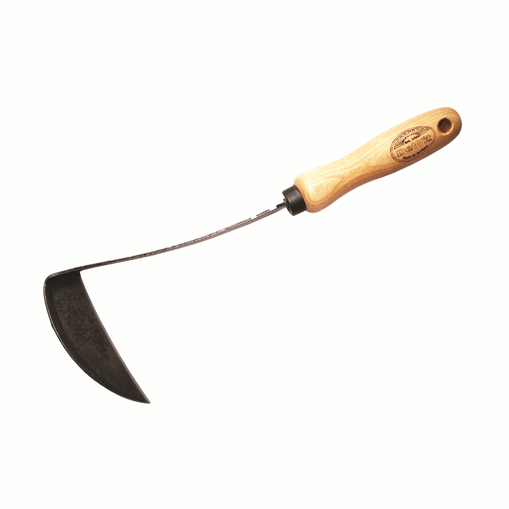 DeWit's Right Hand Japanese Hand Hoe is sharpened on both sides to make gardening chores quick and easy. This tools is excellent for removing grass and weeds. Works especially well when weeding under mulch. Constructed of tempered boron steel with ash hardwood handle. Eco-friendly no need for harsh weed killers. This tool is guaranteed a lifetime! Head: 7"L x 4.5"W Total: 13"L 0.5lbs