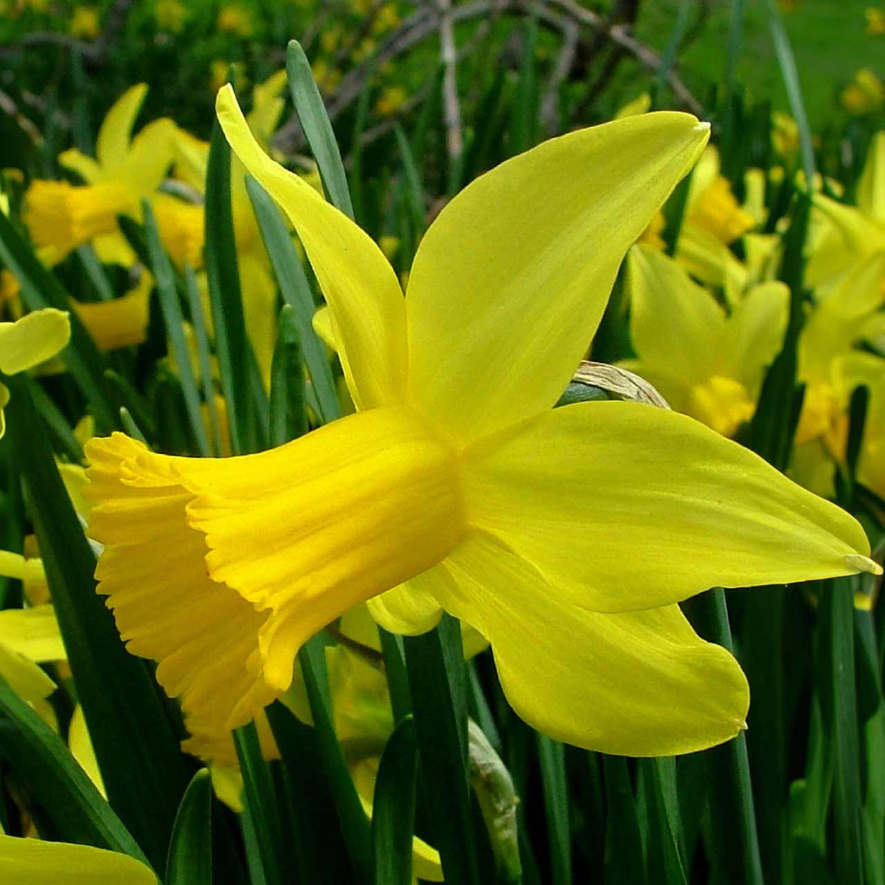 This gleaming, golden Cyclamineus cultivar is one of the first to bloom. Like a cyclamen blossom, February Gold’s bright yellow petals arch back to the stem thrusting its lovely, yellow-orange cup to the forefront. Plant this heirloom in clusters for a springtime spectacle. Great for forcing. Thrives in sun and partial shade. Bulb size 12-14 cm.