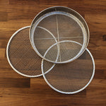 I have been looking for something like this for years, ever since I started cleaning up lettuce seeds. A handy sieve with three different meshes, fine to coarse. The manufacturer says to use it to filter compost, but I can see a lot of other uses as well. Cleaning up your beans and corn to get rid of the chaff, cleaning lettuce seeds, or even filtering out rocks from trouble soil.