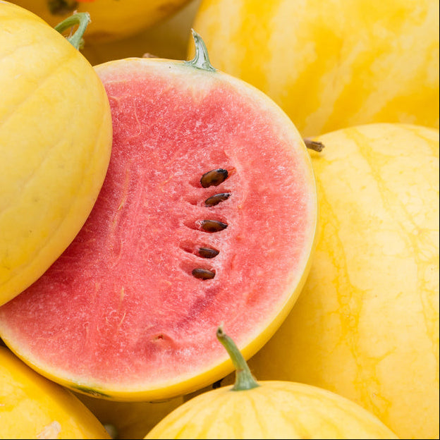 This adorable yellow melon is perfect for short growing seasons and small gardens. Produces 3-pound, serving-sized fruits with salmon-colored flesh and large black seeds. Rind turns yellow when ripe.
