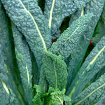 Known as Dinosaur or Black Tuscan Kale, Lacinato is an old Italian heirloom that produces large, highly savoyed blue-green leaves 3” wide and 10-18” long. Flavor is best after a frost or two. Pick early for tender leaves.