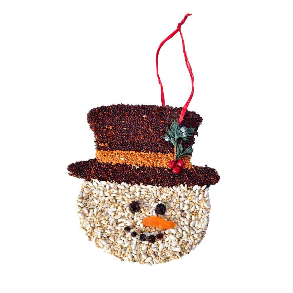 A fun, festive stocking stuffer for bird lovers of all ages! These darling wooden Christmas “cookies” are coated with delectable seeds and fruit treats. Wild birds will flock to this sweet holiday snowman with his bright apricot nose and dazzling blueberry eyes.