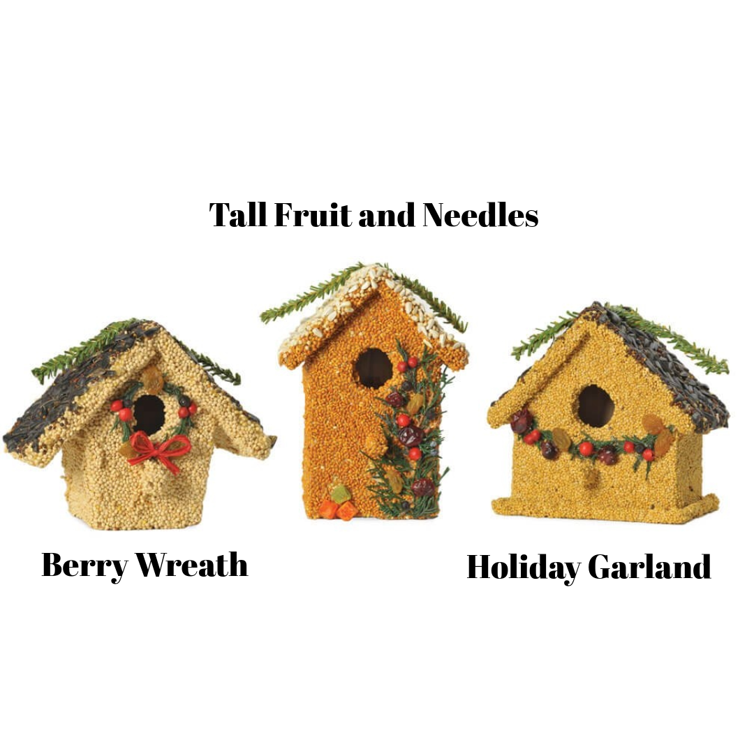 A sweet seasonal seed treat, these adorable cottages are hand decorated with millet, safflower, sunflower hearts, pumpkin seed, pepitas, and dried flowers. A perfect gift for teachers, neighbors, friends, and family. Choose from three assorted styles.