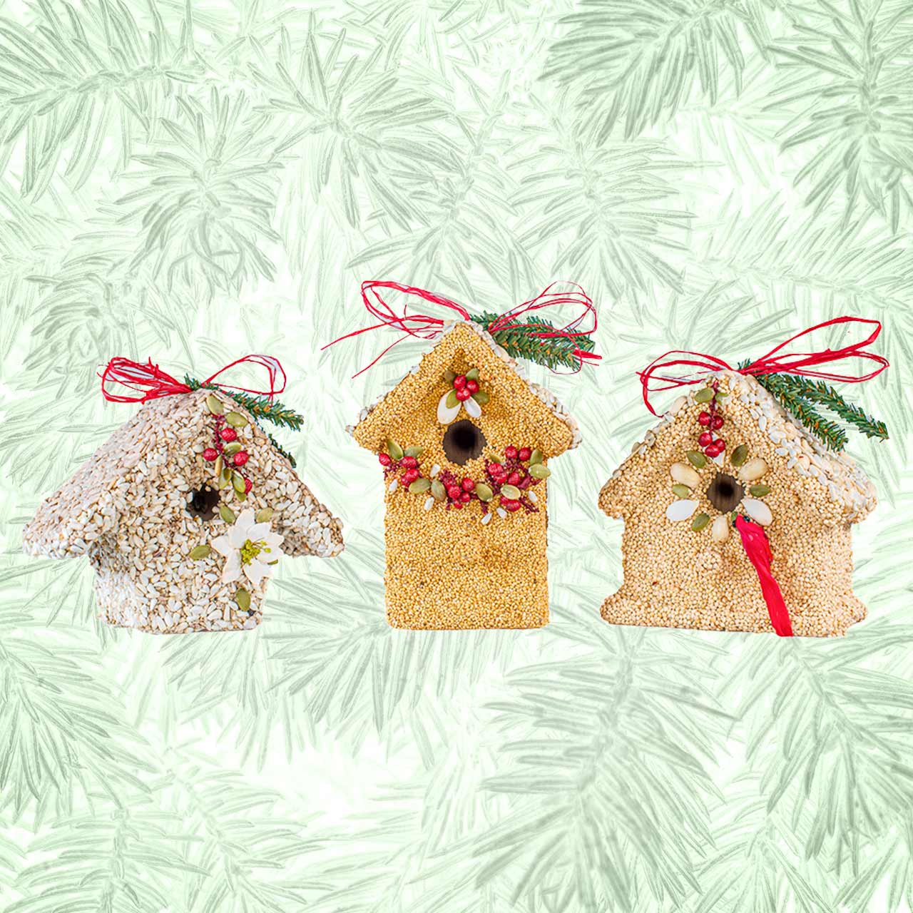 Bring festive charm to your outdoor space with these three elegant cottages that double as delightful seed treats!