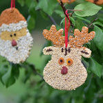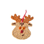 A fun, festive stocking stuffer for bird lovers of all ages! These darling wooden Christmas “cookies” are coated with delectable seeds and fruit treats. His bright red strawberry nose will light the way. Apricot and blueberry eyes and raisin mouth make this Rudolph a birds delight.