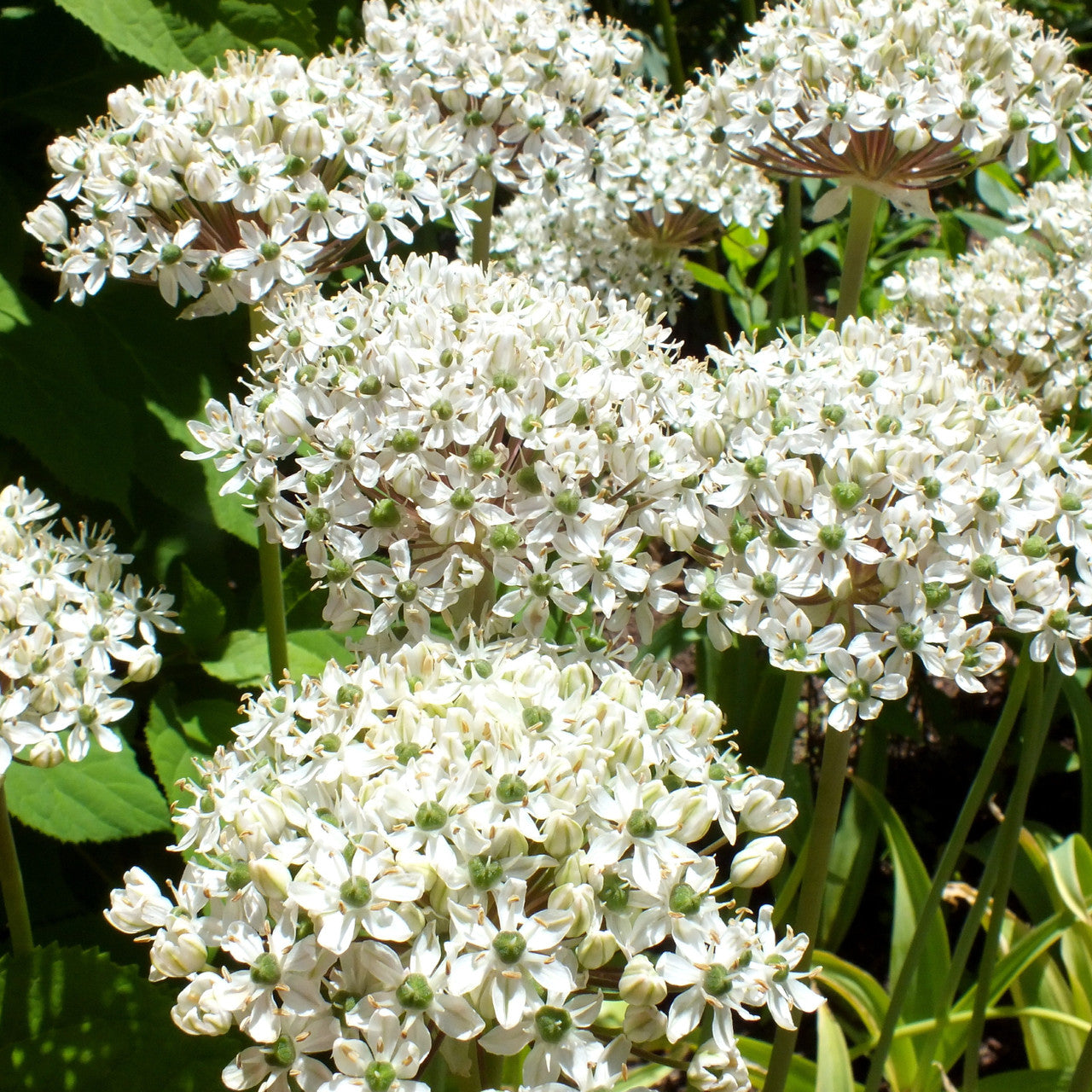 This centuries old heirloom, also known as Black Garlic, is both fragrant and lovely. 3” to 4” blossoms are chockfull of pearl white florets with glistening lime green eyes. Edible flowerheads have a gentle onion flavor, delicious on springtime salads. Statuesque Nigrum is gorgeous when planted in clusters and offers a stunning backdrop for bulb flowers. Loved by pollinators.