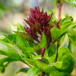 A striking herb with bold red flower spikes, deep burgundy stems, and vibrant green leaves, this warm-season annual adds fragrance, flavor, and beauty to gardens, thriving in full sun while attracting pollinators and enhancing culinary creations. Valued as a medicinal herb. Bushy growth habit. Mature plants reach 24”-30” tall.