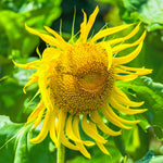 Titan towers above other sunflower varieties, reaching up to 12-14' tall at maturity. Expect a massive 24” flower head loaded with fat, flavorful seeds. Behemoth blossoms with yellow petals and brown, seed-packed centers grow on strong, sturdy stalks. A fun variety for gardeners of all ages to grow.