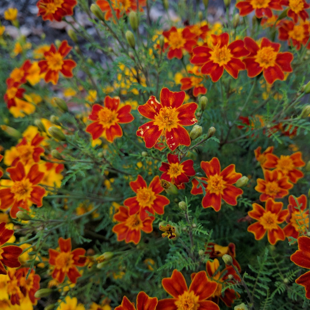 This signet marigold variety produces an abundance of delicate 6-12” tall blooms atop compact mounds of finely divided lacy foliage. A favorite of beneficial pollinators, Red Gems deliver carefree crimson color and a lemony fragrance to beds, borders and containers from early summer to frost. Edible flowers have a subtle spicy, citrusy flavor.