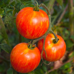 A ruby red, late summer slicer adorned with brilliant orange stripes! Red Zebra is sweet and zesty, firm and meaty, disease and crack resistant. Lovely round tomatoes are 1½ -2 ½” in diameter at maturity.