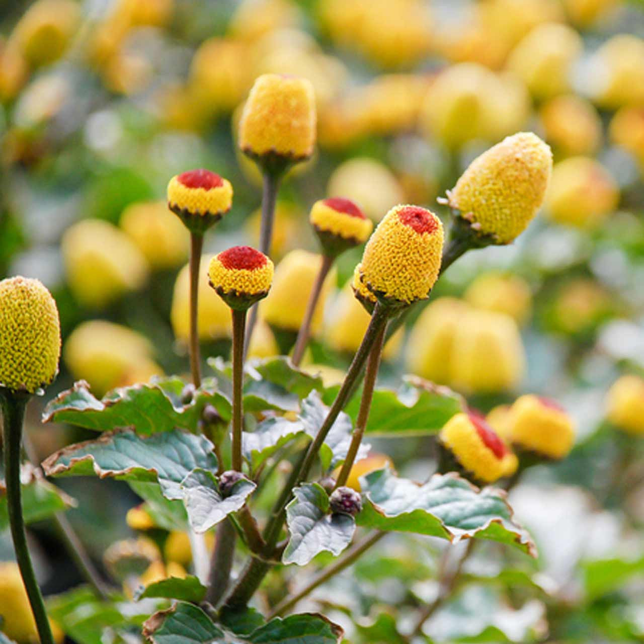 Known as Electric Daisy, Paracress, or Toothache Plant, this exotic heirloom is a member of the daisy family. Gold and auburn cone shaped blooms thrive on bushy plants with oval, sawtooth leaves.Used for culinary and medicinal purposes throughout Asia and South American. Spilanthes is a cheery, eye-catching choice for containers and border gardens. Mature plants reach 12-18” tall.