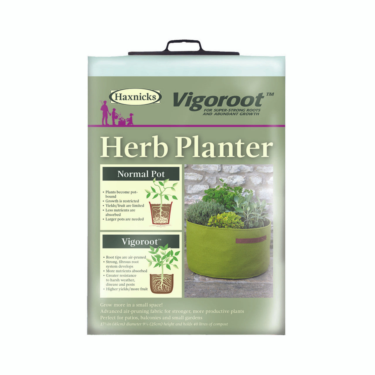 This is no ordinary Herb Planter! Haxnick's unique "Vigoroot" fabric works by air-pruning roots, enhancing their strength and efficacy while improving their ability to sustain plants in a limited amount of compost. A strong root system makes your plants more resistant to harsh weather, pests, and diseases. Detailed instructions, a growing guide, and useful tips are included! Each planter holds 10.6 gallons of growing medium. Convenient handles for easy moving.