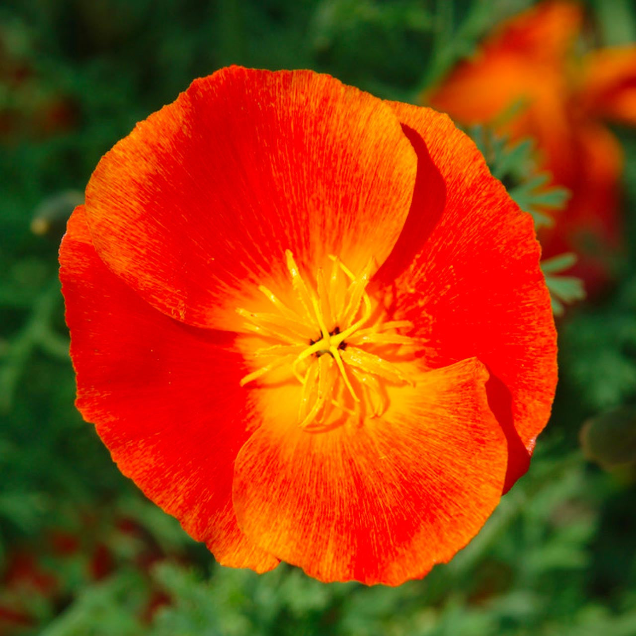 These bold orange- and scarlet-hued wildflowers open and close with the sun! Like other California poppies, the Mikado is drought resistant and easy to grow. Highly attractive to pollinators.