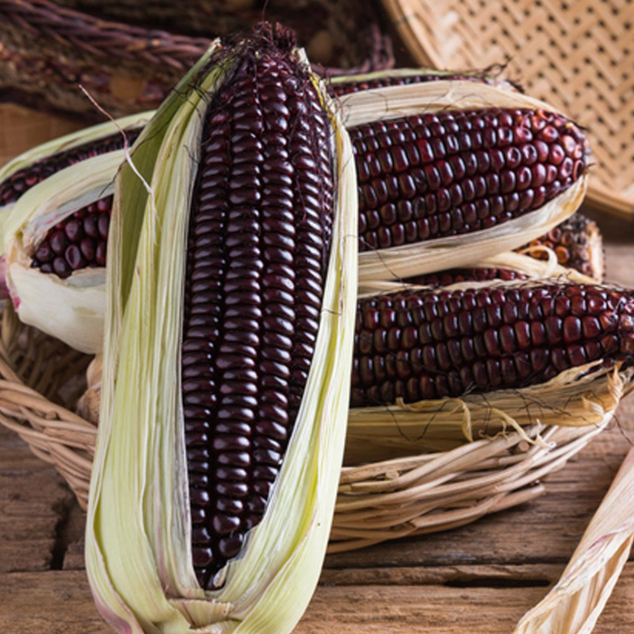 Jerry Petersen is a superb grinding variety that yields a lovely, ultra-soft blue corn flour. We love featuring these stunning, inky blue ears in our autumn ornamental displays. 7-8” ears grow on sturdy plants that reach 7’ tall.