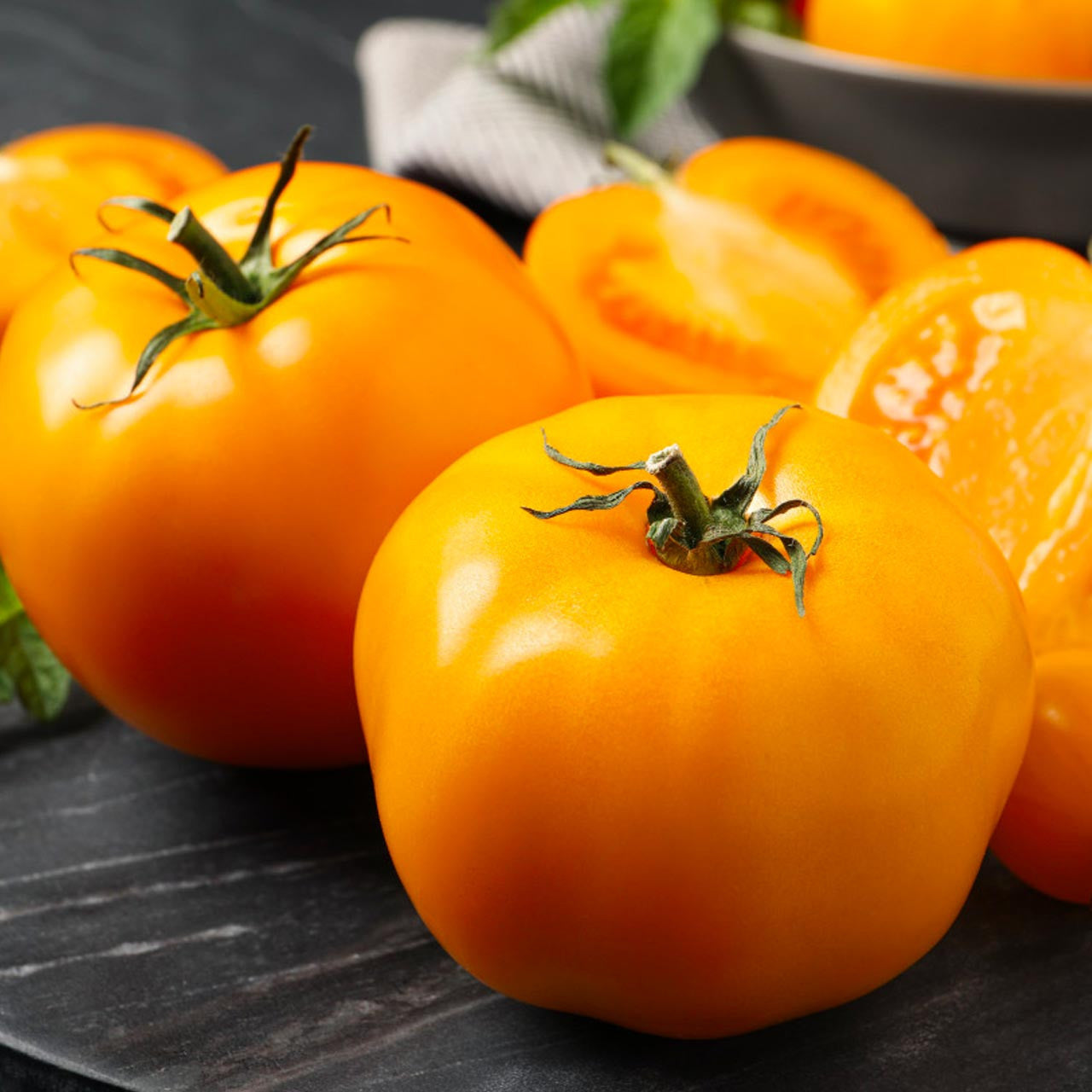 This gorgeous Spanish heirloom was first planted in Maine, then quickly passed among tomato lovers coast to coast because of its tremendous flavor, texture, and large yields. Brilliant yellow fruits weighing 8-10 ounces grow on hardy plants reaching 4-6 feet tall. Delicious fresh and roasted.