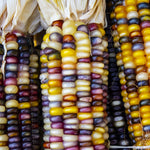 With its multi-hued kernels, this stunning heirloom is a fall decorating favorite. 8-10” ears deliver a rainbow of color and can be used for grinding and hominy. Great for grits, polenta, and tamales.